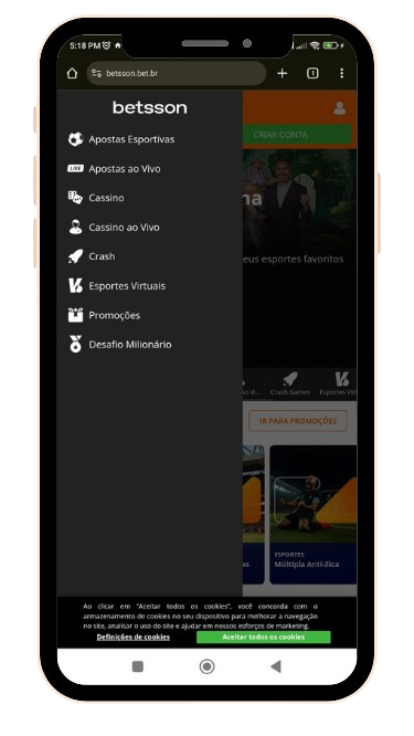 Embora a Betsson ofereça aplicativos móveis em alguns países, o Betsson App não está disponível no Brasil. Portanto, todas as transações (cadastro, depósitos, apostas e saques) são realizadas diretamente pelo navegador do seu celular ou computador. Neste artigo, vamos nos concentrar no navegador do seu dispositivo móvel.